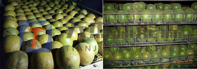 烘干③階段:降溫到55-60度之間,繼續(xù)烘干2天,使果實(shí)的重量下降到相當(dāng)鮮果的25-30%即可成為干果。采取關(guān)閉空氣能烘干排濕熱泵系統(tǒng),讓其自然降溫,待冷卻后才能出爐。